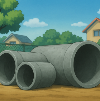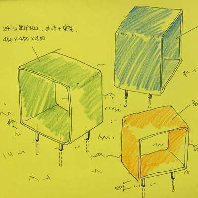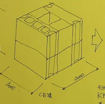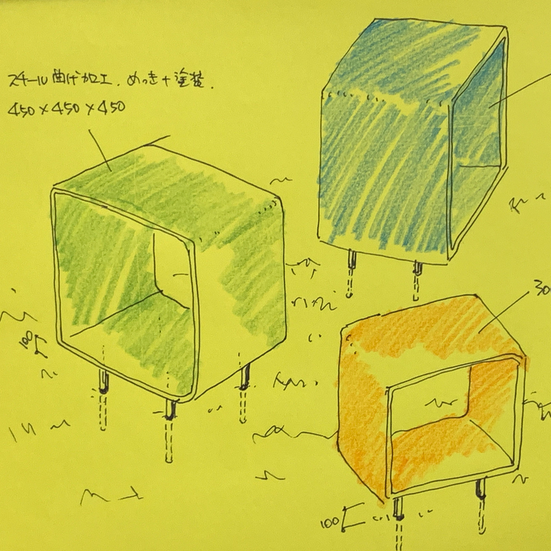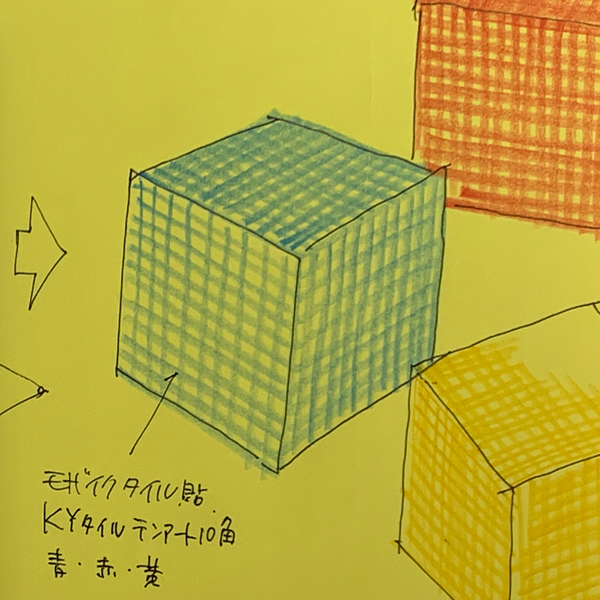 敷地の鋭角な空白部分に「土管」を設置したいと施主からの要望。よくマンガにでてくる公園に無造作におかれたアレ。直径1mくらいのヒューム管だとちょうど人が座れるくらい。ちょっと調べてみると実は高度成長期にライフライン整備のため、施工前の土管が公園に置かれていたのだとか。時代を表す風景だったようです。アイディア自体はすごく面白かったがいろいろとリスクが大きそうだったため止む無く断念。代わりにかわいいキューブベンチを置く計画を提案した(しかしながらこちらも予算があわず実現ならず・・・)
