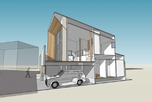 「敷地が狭い。でも駐車スペースはとりたい・・・」となれば上に積み上げていくしかありませんね。車庫の高さはだいたい2mと少しあれば納まります。(改造車はのぞきますが)その上にリビングを持ってくれば、天井の高い開放感のあるリビングを作ることが出来ます。