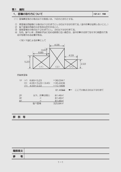 確認申請プログラムv.1.1.4を導入しました。いままでは、民間オリジナルのものや古いバージョンを使っていたので、操作性の違いにただいま奮闘中です。 ところで、ちょっと細かいことなのですが、気になることがありまして・・・プログラムでは容積率、建蔽率などの算出は『自動計算』されるので、いままであまり注意をはらわなかったのですが、どうやら今度のバージョンではいままでと小数点以下の扱いが違っているようです。国交省のHP にもあるように、面積の計算方法については、不動産登記法にならって、だいたいどこも小数点3位切り捨てで統一されてきてますが、率計算の小数点以下の扱いについては、あまり目にした事も無く・・・というのも、いままで使ってきた民間プログラムでは3位以下は「切り捨て」となっているのですが、今回導入したv1.1.4ではなんと真逆の「切り上げ」になっているので、当然、同じ床面積であっても出てきた率は違ってきます。さかのぼってさらに古いバージョンをみてみると、なんとこちらは「四捨五入」になってるではありませんか・・・これはいったいどうなってるんでしょう??? 容積率や建蔽率などは、用途地域などによって上限がきめられていて、それ以上大きなものは建てられないという制限条項という主旨からすれば、切り上げで考えるのが妥当なんでしょうが、近似値を出すという考え方からすれば四捨五入という方法もわからなくもない・・・ 実はいろいろ調べていくと、いままで使っていた民間のプログラムが、なんと今年度から下記のように修正されていたのでした・・・