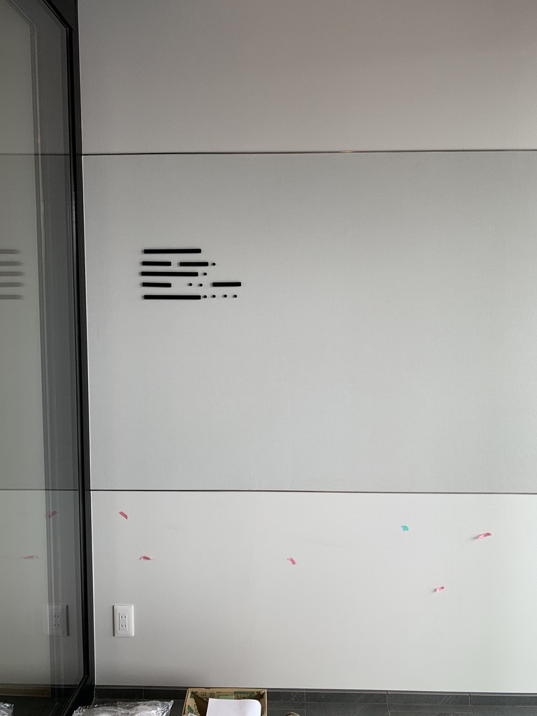 ポスターや紙程度の軽いものであれば 100均の標準マグネットで掲示可能。 単純に既製品取り付けてヤボったくなるのが 少しの工夫で掲示のできる磁石壁が完成した。 しかも既製品とほぼ同額。 快く変更に応じてくれた現場所長に感謝。