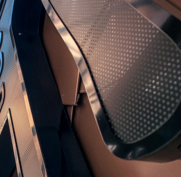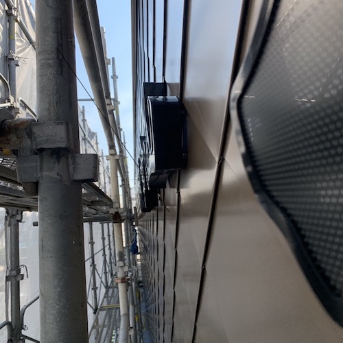壁面に電照式館名サインを計画。 設計時はバックライト式での計画だったのを サイン業者からデュアルカラーの提案があり採用 『昼間は黒、夜間は白』 パンチング仕様のフィルムで光の透過拡散効果を利用