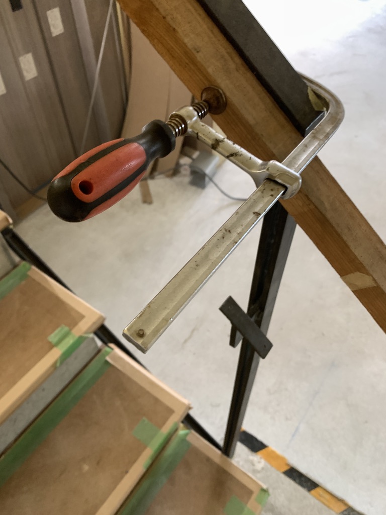 階段の手すりをガラスにしたいという施主希望により製作 スチールFBの組み立てによる落下防止および持ち手用の手すりを計画。