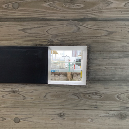 表面の自然な木目があまり主張しすぎずいい状態の仕上がりになった。耐候性を高めるための保護塗料も浸透性を採用したので自然な仕上がりとなった。館名サイン部分は黒い樹脂塗装。ちなみに端部の覗き穴には機能性はまったく無い。