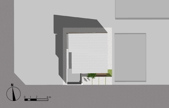一面だけが道路に面している敷地で、中庭プランやスキップフロアなど敷地を活かせる計画を提案してきましたが、最終的には内部空間を充実させる方向へと進みました。