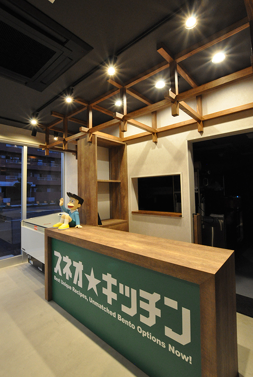 新門司の工場地帯に程近い場所にあるお弁当屋さんです。トラックが行き交う幹線道路はお弁当屋さんの激戦区。新規参入のこの「スネオ☆キッチン」は門司港の一流シェフがプロデュースするちょっとリッチなお弁当を提供する店舗です。