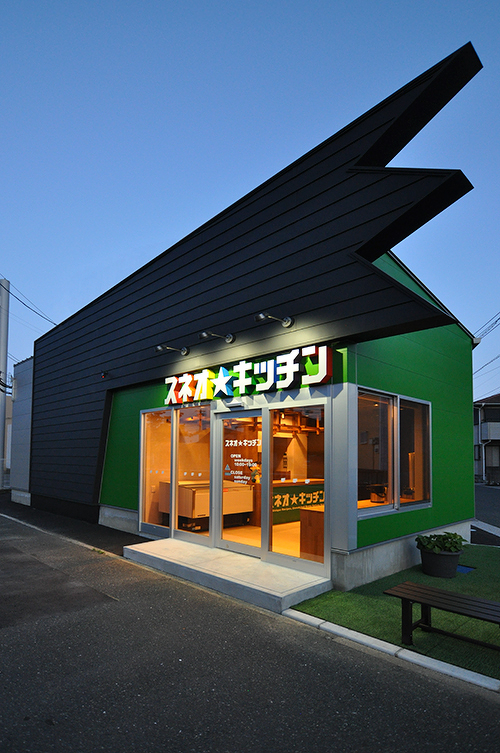 幼少期の頃のオーナーの髪型から発想を得た特徴的な外観に、早朝や夜間の暗い時刻でも立ち寄りやすいように照明による明るさの演出を施し、視認性を高めています。店内は落ち着いた色合いの内装で、木の格子組みの天井が特徴的です。